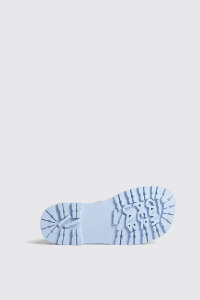 Blue leather boots with chunky outsole.