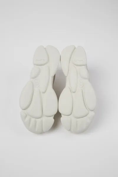 White leather and recycled PET women’s sneakers with OrthoLite® Recycled™ removable footbeds and XL EXTRALIGHT® Organix™ 3.0 outsoles (30% bio-circular compounds).