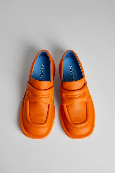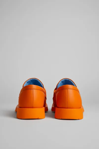 Orange leather padded loafers with rubber outsoles.
