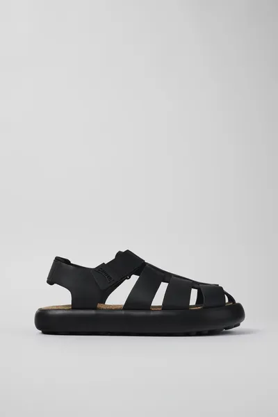 Black leather men’s sandals with ankle straps, cork-lined EVA footbeds, and XL EXTRALIGHT® Organix™ 3.0 outsoles with 30% biocircular components.