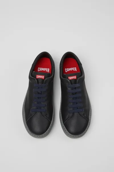 Black calfskin sneakers for women with removable OrthoLite® footbeds, elastic laces and EVA outsoles (20% recycled).