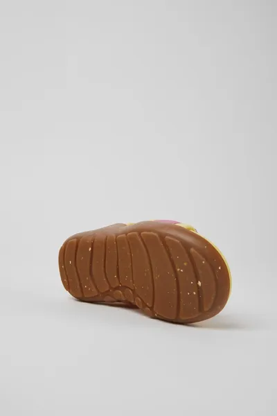 Multicolored textile kids’ sandals with OrthoLite® Recycled™ removable footbeds and rubber outsoles (20% recycled).