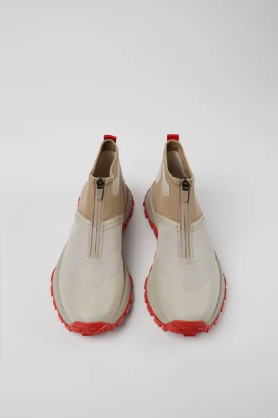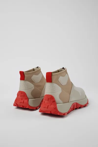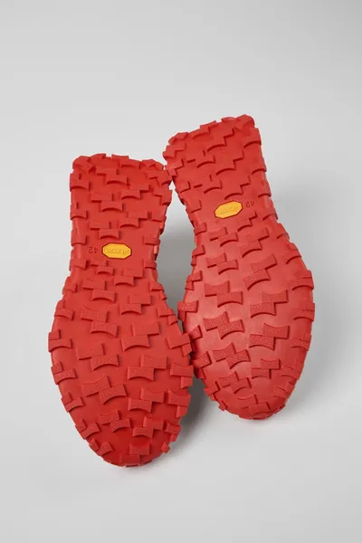 Multicolored recycled PET and TPU film men’s ankle boots with OrthoLite® Recycled™ removable footbeds and Vibram outsoles (30% rubber, 70% EVA).