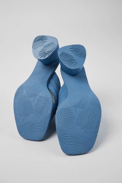 Blue textile women’s sandals with OrthoLite® Recycled™ non-removable footbeds and rubber outsoles.