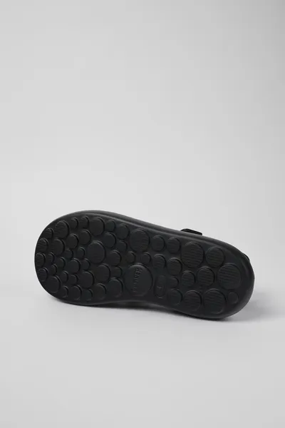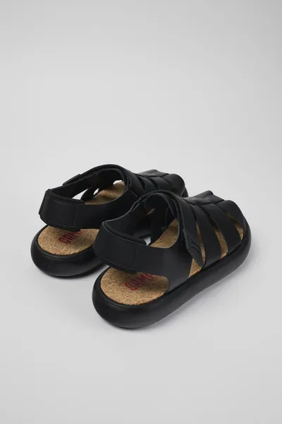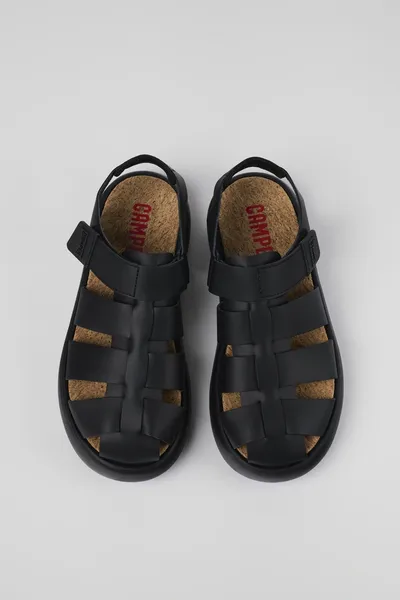 Black leather men’s sandals with ankle straps, cork-lined EVA footbeds, and XL EXTRALIGHT® Organix™ 3.0 outsoles with 30% biocircular components.
