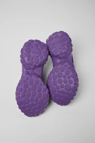 Purple women’s sneakers with recycled polyester and leather, recycled OrthoLite® footbeds and 100% EVA outsoles.