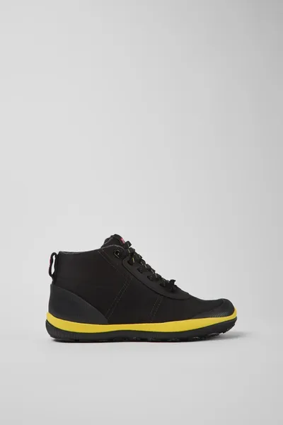 Black recycled PET women’s ankle boots with GORE-TEX technology, OrthoLite® Recycled™ footbeds and 27% natural rubber Michelin outsoles.