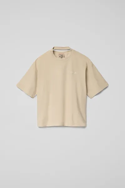 Beige T-shirt in 100% mineral-dyed organic cotton.