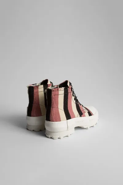 Vulcanized patterned textile boots with toothed rubber outsoles and OrthoLite® cushioned footbed. Made in collaboration with EFI