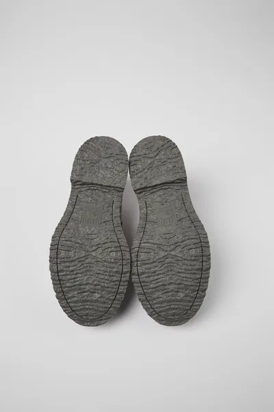 Gray leather men’s loafers with OrthoLite® Recycled™ removable footbeds and rubber outsoles.